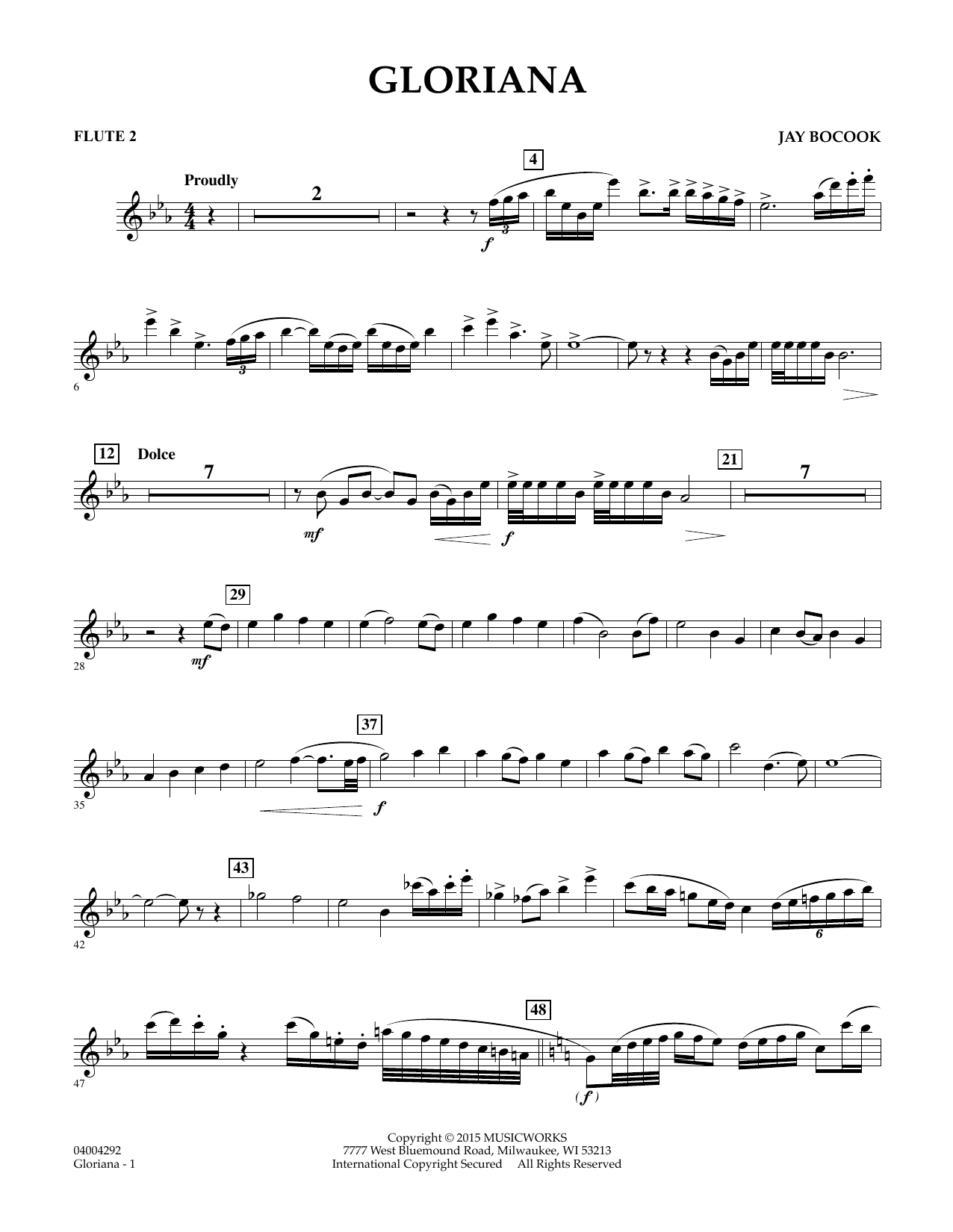 Gloriana' basiert auf dem englischen Gedicht'The Faerie Queene' von Edmund Spenser. Jay Bocooks Werk für sinfonisches Blasorchester besitzt einen königlichen Charakter mit dahingleitenden Melodien und fanfarenartigen Figuren der Blächbläser. Die optionale Orgelstimme erweitert das Klangerlebnis enorm.