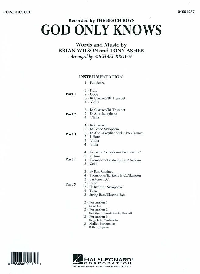 Recorded in 1966 as a part of the Beach Boys' landmark Pet Sounds album, this ballad has become a prime example of Brian Wilson's innovative approach to songwriting and recording. Hailed for its formal and harmonic complexities as well as a memorable hook, 'God Only Knows' has remained popular through the years, and was featured prominently in the biographical film Love & Mercy about the life of Brian Wilson.