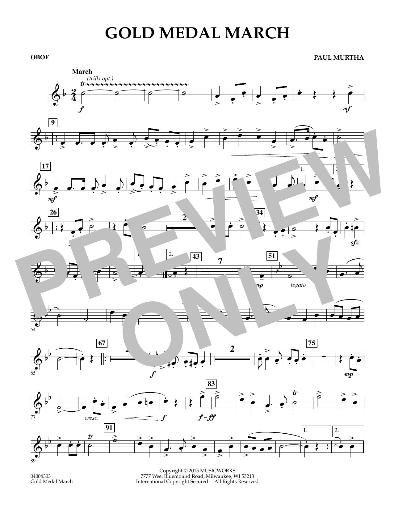 In this piece for second-year players, Paul Murtha masterfully adapts the traditional military march form for young musicians. The first strain is carried by trumpets and upper woodwinds, while the low brass take the lead on the second strain. After a brief percussion break, the legato trio melody features the woodwind section. A call and response breakstrain is followed by the full band on the rousing finish. Keep the march alive with this marvelous piece! Dur: 2:50