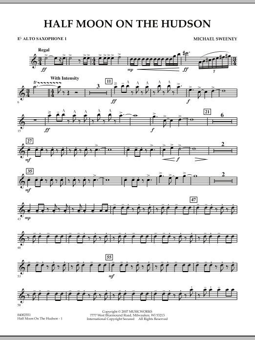 Nearly 400 years ago (in 1609) Henry Hudson and his ship, the Half Moon, explored the majestic river that was later to bear his name. Half Moon on the Hudson pays tribute to this area of New York and the spirit of exploration and adventure. A regal fanfare announces the beginning of the work, followed by an energetic and rhythmic section that features various sections of the band answering one another. An emotional and chorale-like middle section provides a calmer mood along with lush harmonizations. The brass and percussion sections herald the final segment, driving to a dramatic conclusion of this rewarding work for winds.