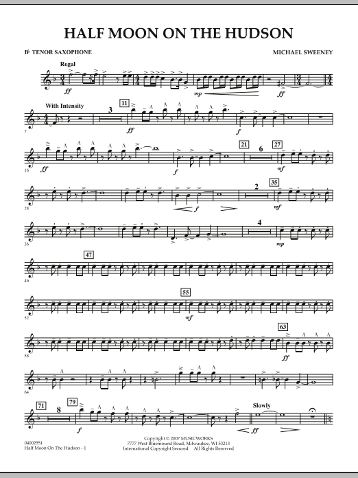 Nearly 400 years ago (in 1609) Henry Hudson and his ship, the Half Moon, explored the majestic river that was later to bear his name. Half Moon on the Hudson pays tribute to this area of New York and the spirit of exploration and adventure. A regal fanfare announces the beginning of the work, followed by an energetic and rhythmic section that features various sections of the band answering one another. An emotional and chorale-like middle section provides a calmer mood along with lush harmonizations. The brass and percussion sections herald the final segment, driving to a dramatic conclusion of this rewarding work for winds.