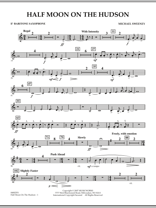 Nearly 400 years ago (in 1609) Henry Hudson and his ship, the Half Moon, explored the majestic river that was later to bear his name. Half Moon on the Hudson pays tribute to this area of New York and the spirit of exploration and adventure. A regal fanfare announces the beginning of the work, followed by an energetic and rhythmic section that features various sections of the band answering one another. An emotional and chorale-like middle section provides a calmer mood along with lush harmonizations. The brass and percussion sections herald the final segment, driving to a dramatic conclusion of this rewarding work for winds.