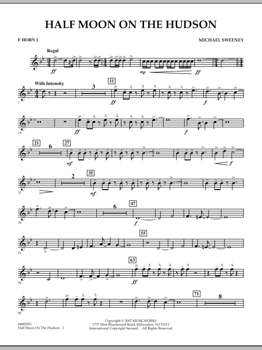 Nearly 400 years ago (in 1609) Henry Hudson and his ship, the Half Moon, explored the majestic river that was later to bear his name. Half Moon on the Hudson pays tribute to this area of New York and the spirit of exploration and adventure. A regal fanfare announces the beginning of the work, followed by an energetic and rhythmic section that features various sections of the band answering one another. An emotional and chorale-like middle section provides a calmer mood along with lush harmonizations. The brass and percussion sections herald the final segment, driving to a dramatic conclusion of this rewarding work for winds.