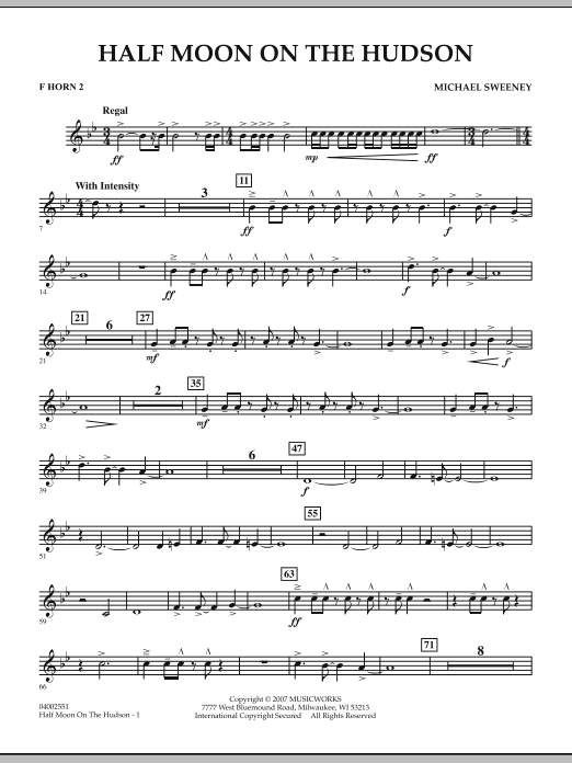 Nearly 400 years ago (in 1609) Henry Hudson and his ship, the Half Moon, explored the majestic river that was later to bear his name. Half Moon on the Hudson pays tribute to this area of New York and the spirit of exploration and adventure. A regal fanfare announces the beginning of the work, followed by an energetic and rhythmic section that features various sections of the band answering one another. An emotional and chorale-like middle section provides a calmer mood along with lush harmonizations. The brass and percussion sections herald the final segment, driving to a dramatic conclusion of this rewarding work for winds.