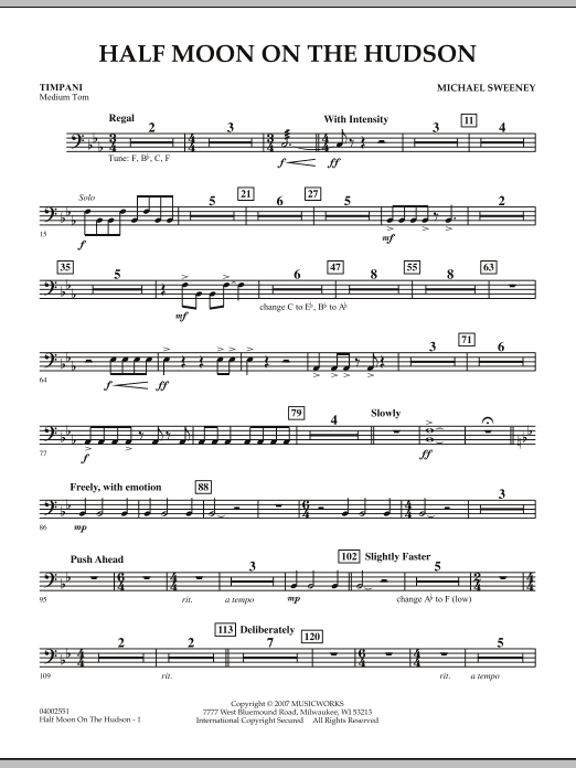 Nearly 400 years ago (in 1609) Henry Hudson and his ship, the Half Moon, explored the majestic river that was later to bear his name. Half Moon on the Hudson pays tribute to this area of New York and the spirit of exploration and adventure. A regal fanfare announces the beginning of the work, followed by an energetic and rhythmic section that features various sections of the band answering one another. An emotional and chorale-like middle section provides a calmer mood along with lush harmonizations. The brass and percussion sections herald the final segment, driving to a dramatic conclusion of this rewarding work for winds.