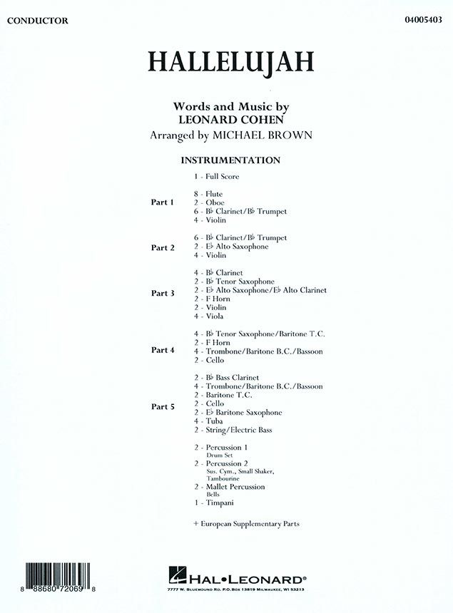 This landmark ballad by Leonard Cohen has been recorded by countless artists, and continues to be featured in TV and film, notably in the movie Shrek. Heres a marvelous version with flexible scoring options for smaller groups.