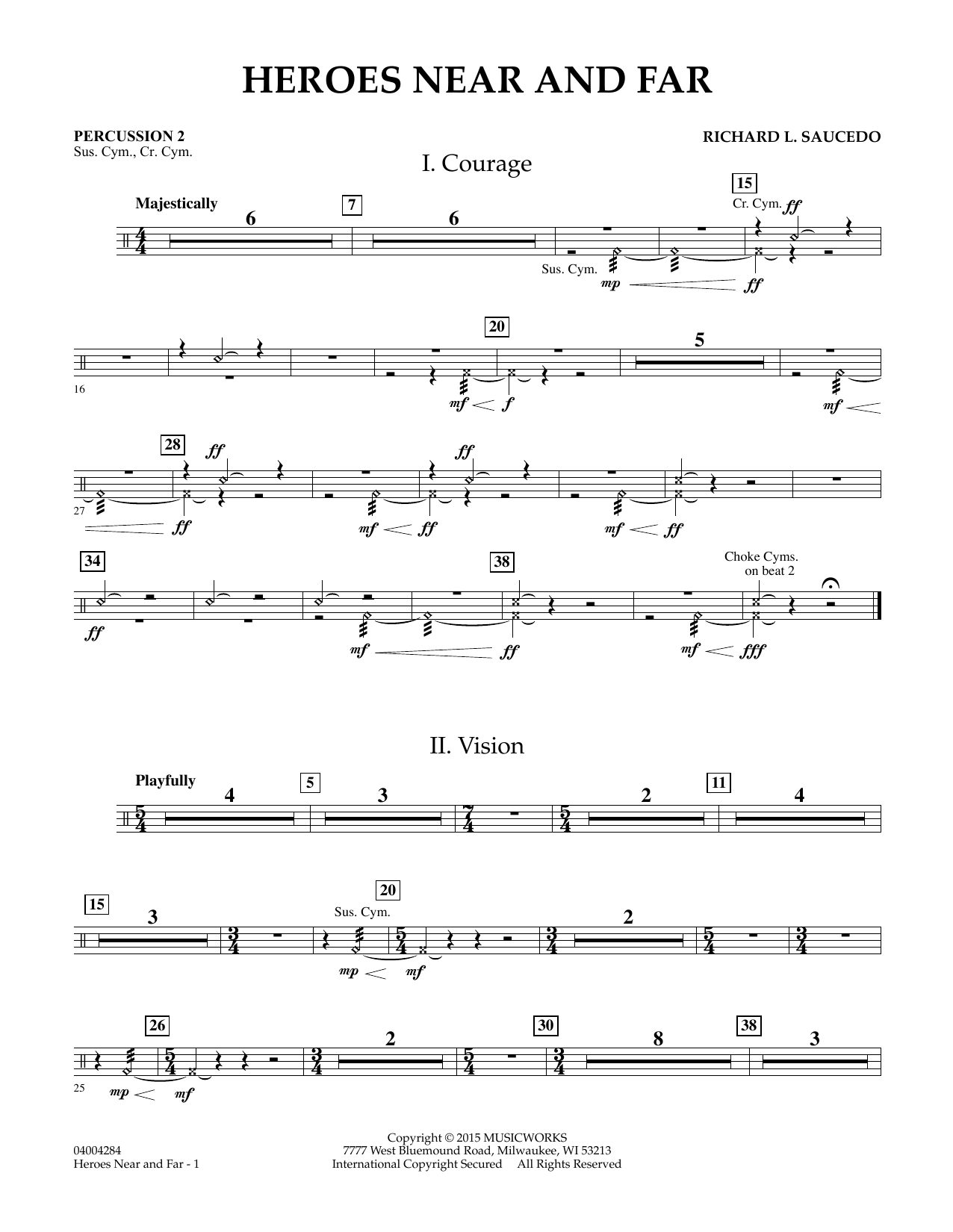 Each of the five movements of this innovative work is designed to invoke a particular type of emotion associated with leadership. Courage is stately in nature and played in a marcato style. Vision has a playful sense and focuses on mixed meters as well as mixed emotions. The lyric and sensitive Compassion is meant to stir the soul, while the contrasting Selflessness offers some of the most intense and demanding music of the set. The energetic final movement, Heroes, will bring to mind your own favorite superhero! Educator and speaker Scott Lang helped develop the concept for this unique work, and has made available supplemental curricula centered around leadership and character development. This material is tied to the Common Core Standards relating to reading, writing, music, art, and critical thinking. Each movement and accompanying curriculum can stand on its own, allowing the director the flexibility of using as much or as little as desired. A tremendous resource for today's teacher! Dur: 9:20