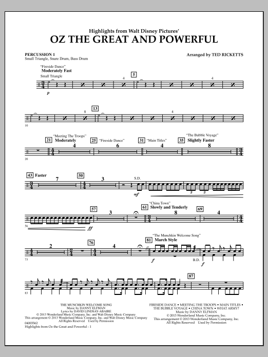 From the stunning movie blockbuster Oz the Great and Powerful comes this distinctive and varied soundtrack from Danny Elfman. Featuring some of the film's lighter as well as darker moments here is a great sounding medley for band.