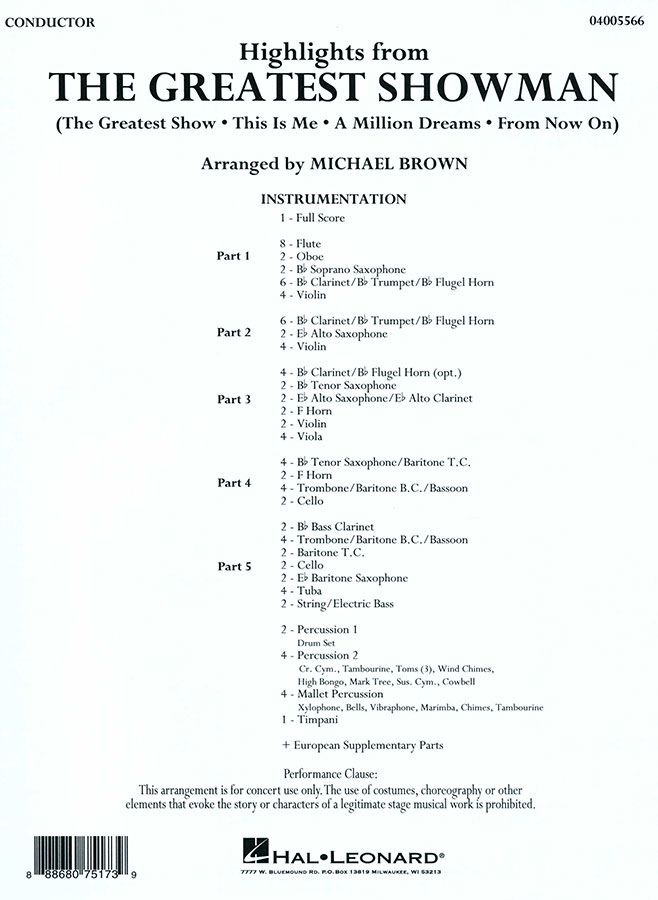 From the widely popular soundtrack of the hit movie The Greatest Showman, here is a fast-paced medley skillfully adapted for flexible instrumentation. Includes: The Greatest Show, A Million Dreams, This Is Me, and From Now On.