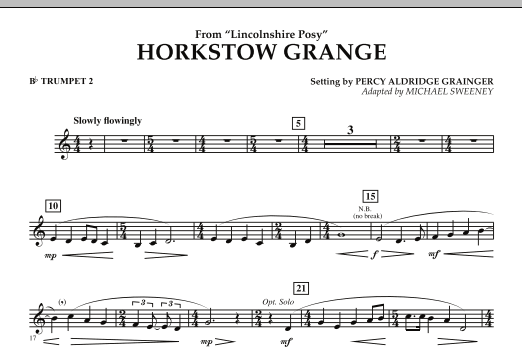 From Grainger's masterwork for band Lincolnshire Posy, here is the second movement smartly adapted for young level by Michael Sweeney. This edition uses a lower key for range considerations, yet retains all of the charm and beauty of the original. What a terrific opportunity to instill an appreciation of Grainger in your young players! Dur: 2:30
