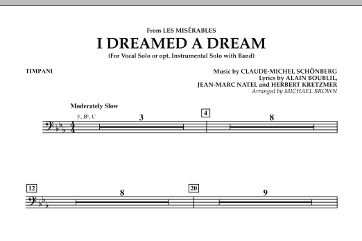 Diese berührende Ballade aus dem Erfolgsmusical "Les Miserables" hat sich bereits als Klassiker etabliert, lange bevor Susan Boyle bei Britain's Got Talent den Durchbruch schaffte. Dieses gekonnt ausgearbeitete Arrangement kann für einen Sänger oder eine beliebige Anzahl von Instrumentalsoli (einschließlich Klarinette, Altsaxophon, Trompete oder F-Horn) verwendet werden. Sicherlich ein Konzert-Highlight, wo auch immer es aufgeführt wird.