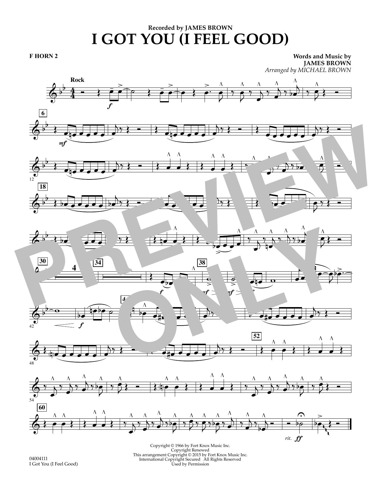 In diesem energiegeladenen Arrangement des typischen Hits des Godfather of Soul beginnen die tiefen Blechbläser mit dem Thema und die Band antwortet mit den bekannten Riffs. Die Saxophone sind im Breakdown-Teil zusammen mit den übrigen Holzbläsern zu hören. Ein schöner Hauch von Nostalgie für jedes Publikum.