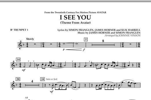 From the groundbreaking movie blockbuster Avatar, here is the main theme used in the end credits. Johnnie Vinson's sensitive arrangement features light woodwind scoring in the beginning then builds into a powerful setting for the entire ensemble.