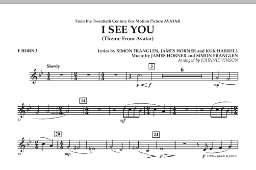 From the groundbreaking movie blockbuster Avatar, here is the main theme used in the end credits. Johnnie Vinson's sensitive arrangement features light woodwind scoring in the beginning then builds into a powerful setting for the entire ensemble.