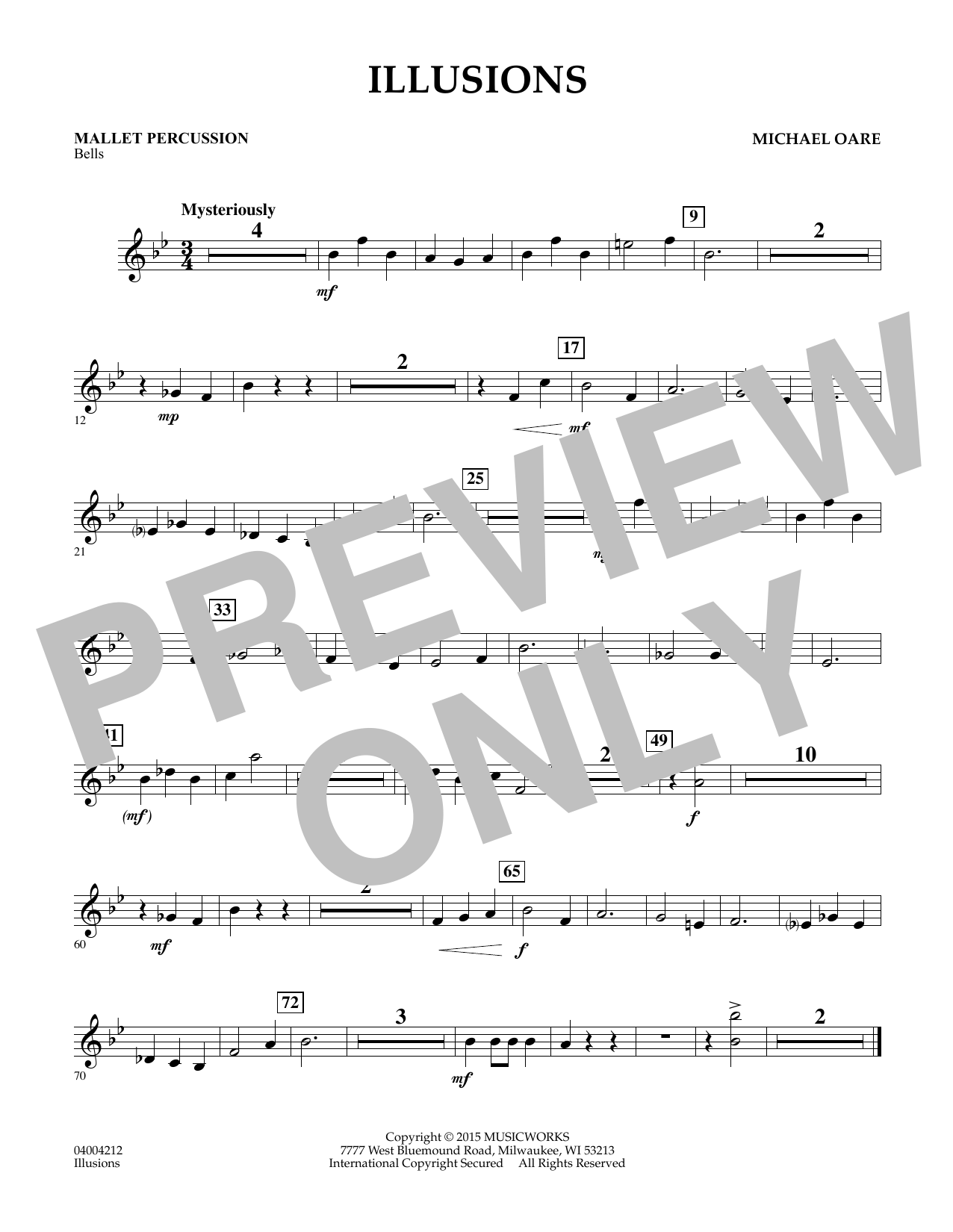 An illusion can be defined as something that seems different than it really is. In this unique piece for very young players, Michael Oare uses shifting tonal centers to intentionally deceive the listener in order to create a musical illusion. It provides an opportunity for careful use of notes from the chromatic scale in a striking and fun setting! Dur: 1:55