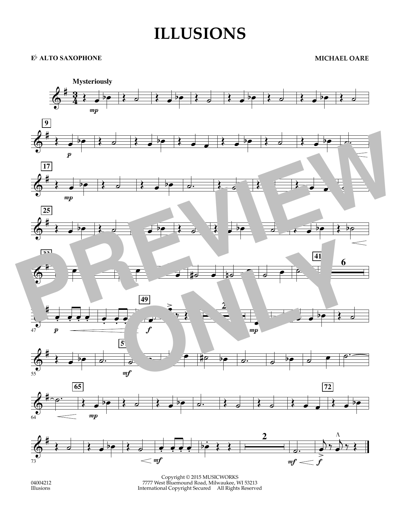 An illusion can be defined as something that seems different than it really is. In this unique piece for very young players, Michael Oare uses shifting tonal centers to intentionally deceive the listener in order to create a musical illusion. It provides an opportunity for careful use of notes from the chromatic scale in a striking and fun setting! Dur: 1:55