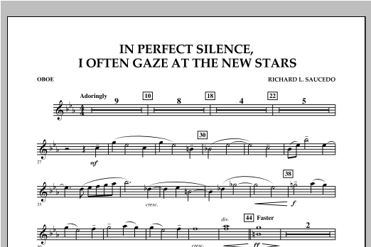 On a Sunday afternoon in May of 2011 tornados devastated the city of Joplin, Missouri. In Perfect Silence, I Often Gaze at the New Stars is intended as a musical tribute to those who lost their lives that day and to those heroes who gave everything they could to help others. The music is a beautiful blending of sounds and moods, and carries with it a full range of emotions from reflective quiet moments to the massive outpouring from the entire ensemble. An evocative and moving work for band that will resonate with both performers and listeners. Dur: 3:50