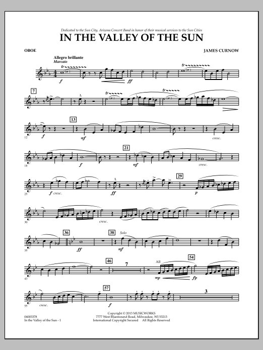 Im Auftrag der Sun City, Arizona Concert Band wurde In the Valley of the Sun in Form einer dreiteiligen Ouvertüre komponiert, die mit einem ausgelassenen und rhythmischen Thema im Western-Stil beginnt. Das langsame Mittelthema beschreibt musikalisch die Schönheit der Wüste von Arizona mit einer fließenden, aber kantigen Melodie. Das Western-Ambiente kehrt zurück und führt das Werk zu einem spannenden und treibenden Abschluss. (Grad 3.5) Dauer: 5:50