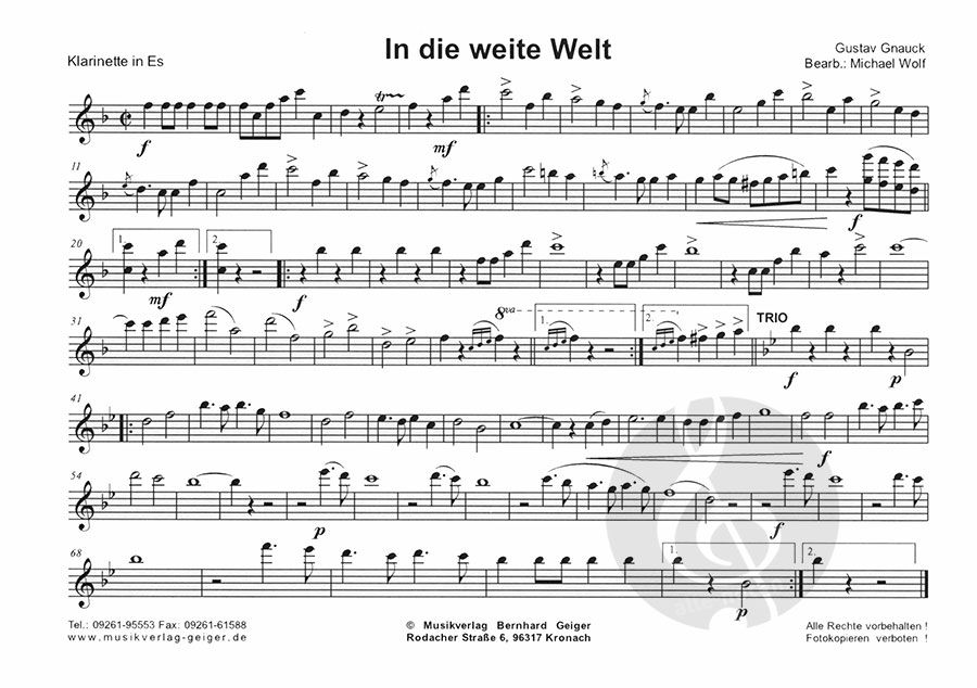 Der sehr bekannte Marsch von Gustav Gnauck ist nun endlich auch als Einzel-Nummer lieferbar.
