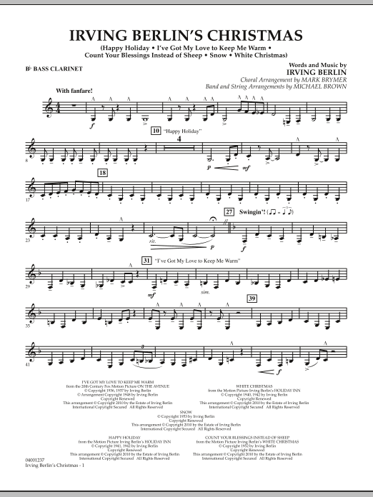 This spectacular setting for choir, band and optional strings of some of Irving Berlin's classic songs offers a variety of entertaining performance options and highlights his most beloved holiday songs. The 7-minute medley includes: Happy Holiday, Snow, I've Got My Love To Keep Me Warm, Count Your Blessings Instead of Sheep, White Christmas.