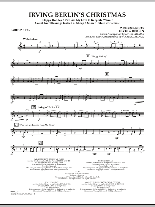 This spectacular setting for choir, band and optional strings of some of Irving Berlin's classic songs offers a variety of entertaining performance options and highlights his most beloved holiday songs. The 7-minute medley includes: Happy Holiday, Snow, I've Got My Love To Keep Me Warm, Count Your Blessings Instead of Sheep, White Christmas.