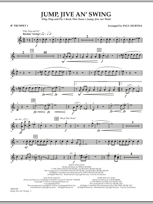 Mit den beliebten Swing-Hits Flip Flop and Fly, Jump, Jive an' Wail und Rock This Town liegt hier ein unterhaltsames Medley für Band vor, das alle zum Tanzen bringen wird. Paul Murtha hat diesen lustigen, jazzigen Stil gekonnt für die Konzertbühne adaptiert.