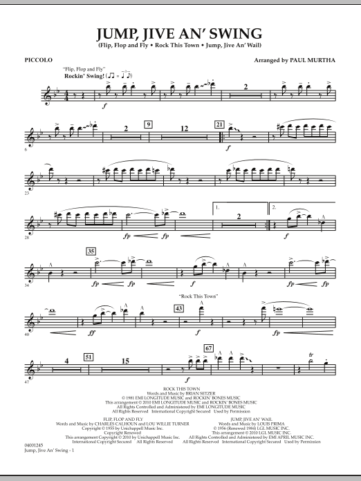 Mit den beliebten Swing-Hits Flip Flop and Fly, Jump, Jive an' Wail und Rock This Town liegt hier ein unterhaltsames Medley für Band vor, das alle zum Tanzen bringen wird. Paul Murtha hat diesen lustigen, jazzigen Stil gekonnt für die Konzertbühne adaptiert.