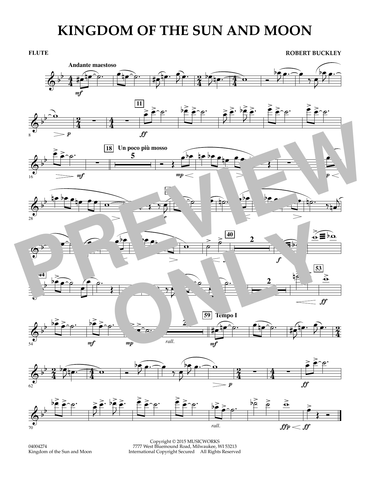 Inspired by an exhibition of historic Peruvian art, Kingdom of the Sun and Moon takes us on a mythical journey reflecting the ancient Inca Empire. This imaginary movie score uses modal melodies, exotic percussion and dramatic orchestration to create an epic music experience. In cinematic style, this work opens with a panoramic picture of the great Inca city of Machu Picchu and ends with a colorful procession towards the Temple of the Sun. Though written for young band, Kingdom of the Sun and Moon's effective scoring gives it the sophisticated sound and intensity of a much more advanced piece. Dur: 3:20
