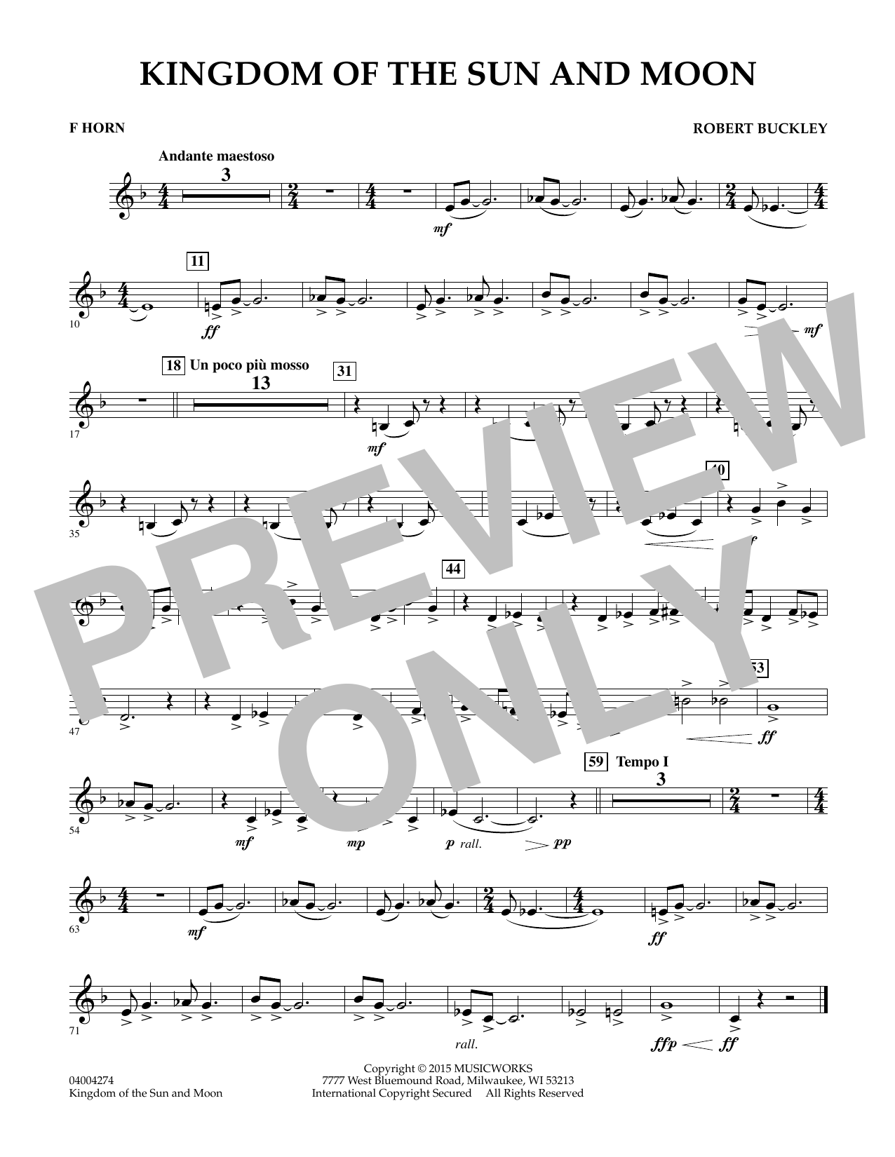 Inspired by an exhibition of historic Peruvian art, Kingdom of the Sun and Moon takes us on a mythical journey reflecting the ancient Inca Empire. This imaginary movie score uses modal melodies, exotic percussion and dramatic orchestration to create an epic music experience. In cinematic style, this work opens with a panoramic picture of the great Inca city of Machu Picchu and ends with a colorful procession towards the Temple of the Sun. Though written for young band, Kingdom of the Sun and Moon's effective scoring gives it the sophisticated sound and intensity of a much more advanced piece. Dur: 3:20
