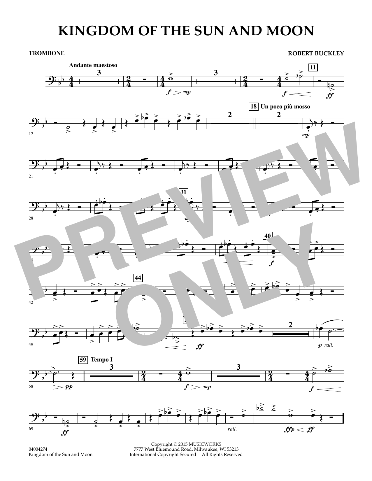 Inspired by an exhibition of historic Peruvian art, Kingdom of the Sun and Moon takes us on a mythical journey reflecting the ancient Inca Empire. This imaginary movie score uses modal melodies, exotic percussion and dramatic orchestration to create an epic music experience. In cinematic style, this work opens with a panoramic picture of the great Inca city of Machu Picchu and ends with a colorful procession towards the Temple of the Sun. Though written for young band, Kingdom of the Sun and Moon's effective scoring gives it the sophisticated sound and intensity of a much more advanced piece. Dur: 3:20