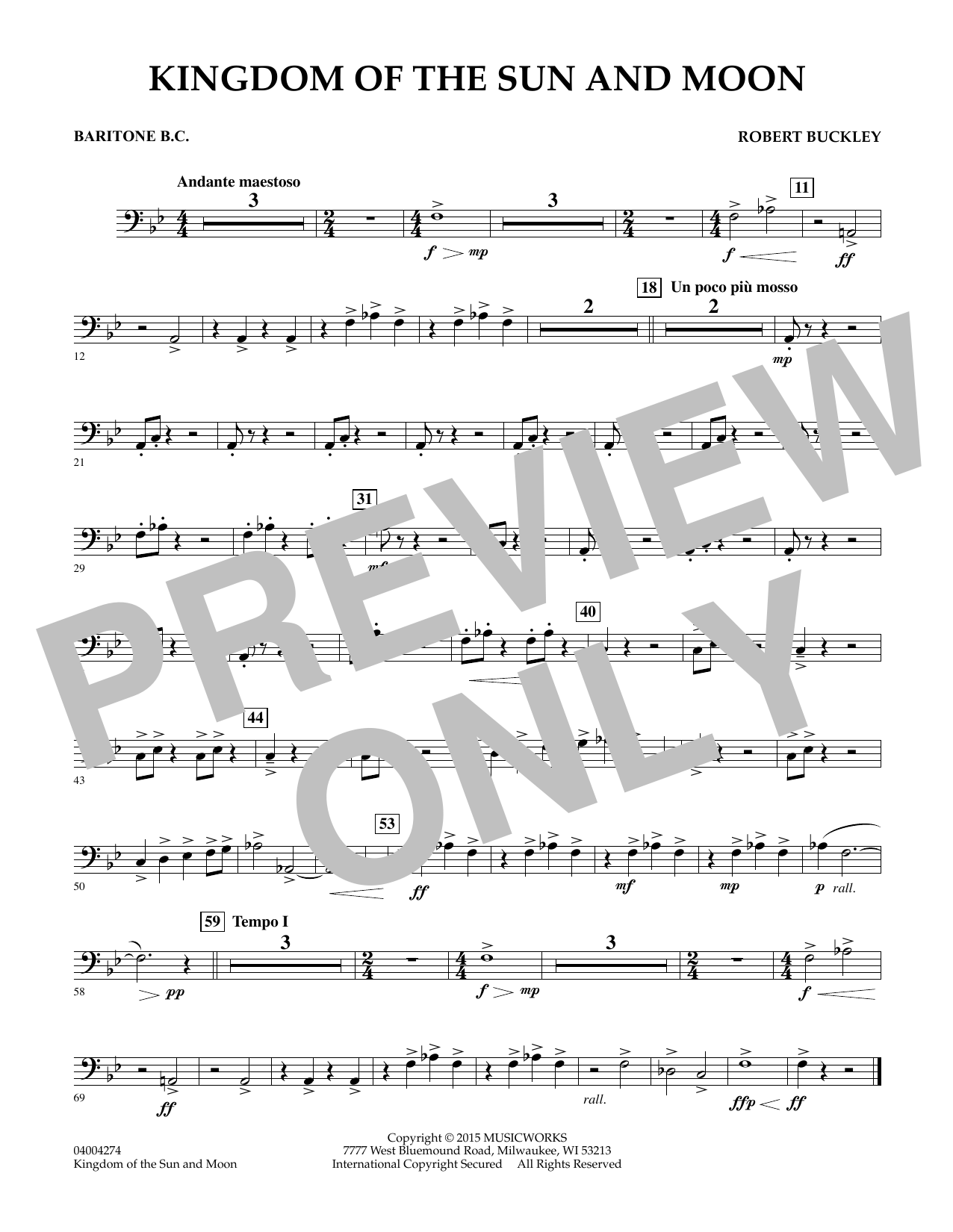 Inspired by an exhibition of historic Peruvian art, Kingdom of the Sun and Moon takes us on a mythical journey reflecting the ancient Inca Empire. This imaginary movie score uses modal melodies, exotic percussion and dramatic orchestration to create an epic music experience. In cinematic style, this work opens with a panoramic picture of the great Inca city of Machu Picchu and ends with a colorful procession towards the Temple of the Sun. Though written for young band, Kingdom of the Sun and Moon's effective scoring gives it the sophisticated sound and intensity of a much more advanced piece. Dur: 3:20