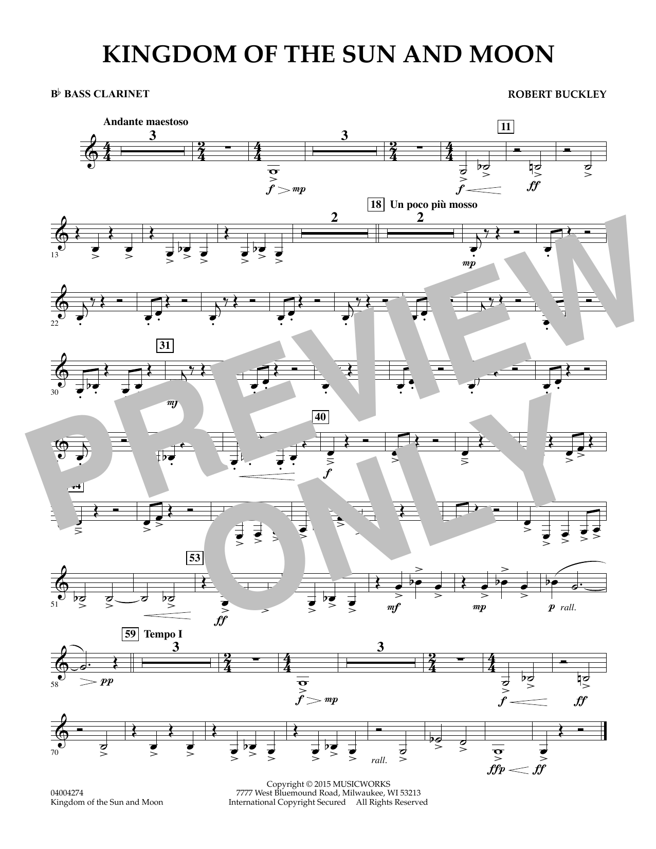Inspired by an exhibition of historic Peruvian art, Kingdom of the Sun and Moon takes us on a mythical journey reflecting the ancient Inca Empire. This imaginary movie score uses modal melodies, exotic percussion and dramatic orchestration to create an epic music experience. In cinematic style, this work opens with a panoramic picture of the great Inca city of Machu Picchu and ends with a colorful procession towards the Temple of the Sun. Though written for young band, Kingdom of the Sun and Moon's effective scoring gives it the sophisticated sound and intensity of a much more advanced piece. Dur: 3:20