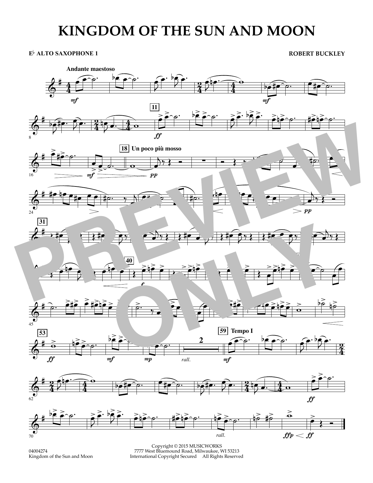 Inspired by an exhibition of historic Peruvian art, Kingdom of the Sun and Moon takes us on a mythical journey reflecting the ancient Inca Empire. This imaginary movie score uses modal melodies, exotic percussion and dramatic orchestration to create an epic music experience. In cinematic style, this work opens with a panoramic picture of the great Inca city of Machu Picchu and ends with a colorful procession towards the Temple of the Sun. Though written for young band, Kingdom of the Sun and Moon's effective scoring gives it the sophisticated sound and intensity of a much more advanced piece. Dur: 3:20
