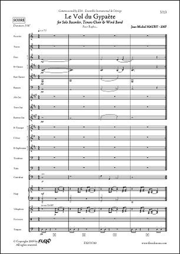 This Piece, simple to execute, allows bringing forward a Flute or Recorder player, even a junior one, for a concert. It is a successful mix between new age music and wind band music. Its musical atmosphere reminds the flight of a lammergeyer (eagle) above the mountains.