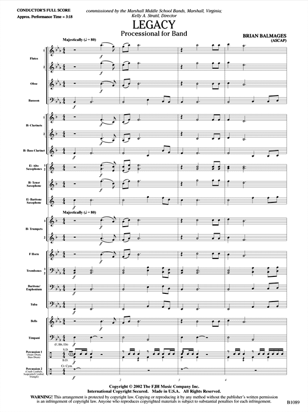 Diese Prozession ist ideal für Konzerte, Abschlussfeiern oder andere besondere Zeremonien. Stattliche Fanfaren in den Blech- und Holzbläsern gehen in einen Mittelteil mit mehr Bewegung und Puls über, während sie in einen mehr legato Stil übergehen. Die Anfangsfigur kehrt mit einer letzten brillanten Fanfare der Blechbläser zurück (3:20).