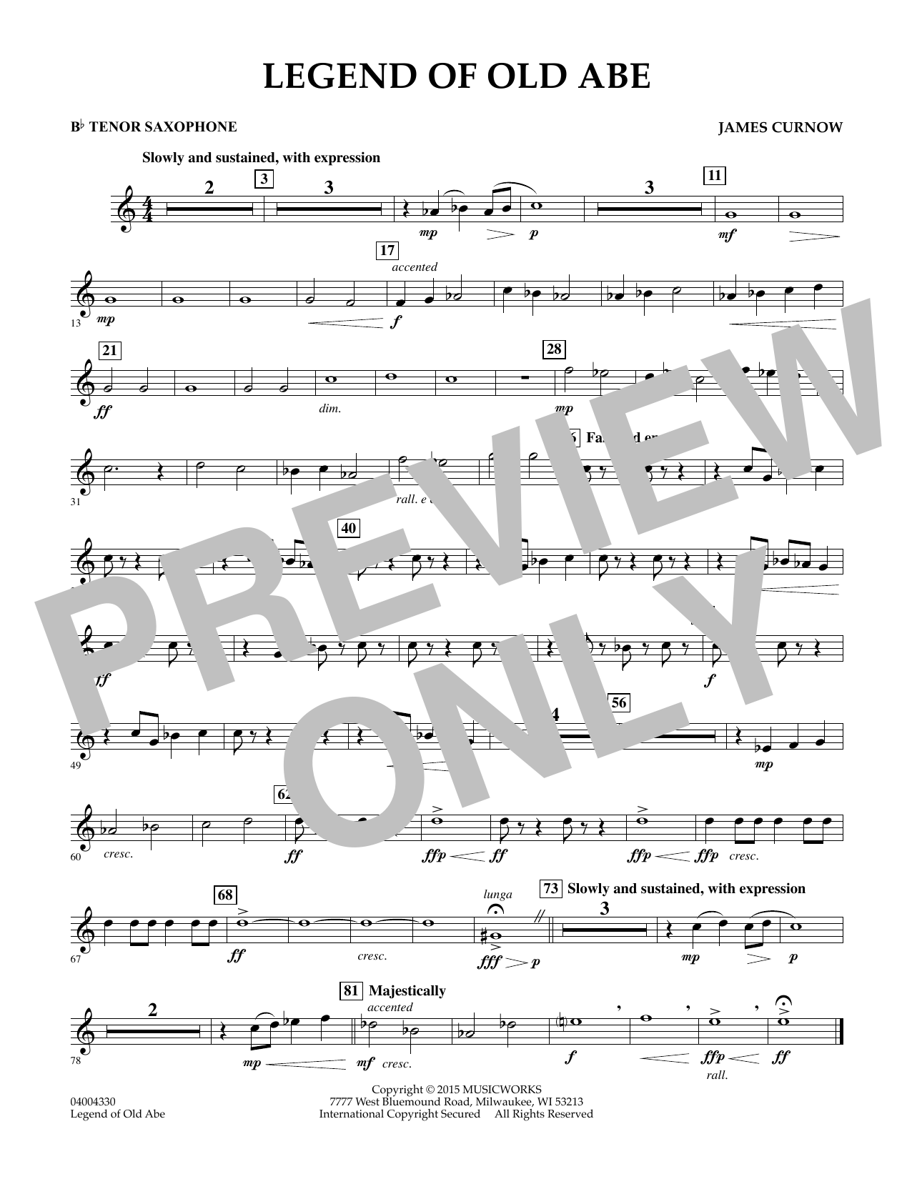 Named after President Lincoln, Old Abe was a famous bald eagle who served as mascot for the 8th Wisconsin Volunteer Infantry Regiment during the Civil War. Legend of Old Abe is a marvelously descriptive work for young bands that takes the listener on a journey of Old Abe's exploits. From a peaceful and serene opening the work progresses through the sounds of conflict and battle. The mood turns reflective and then triumphant as the music celebrates this amazing true story. Combine cross curricular teaching in your bandroom as you bring history to life through music. Dur: 3:50