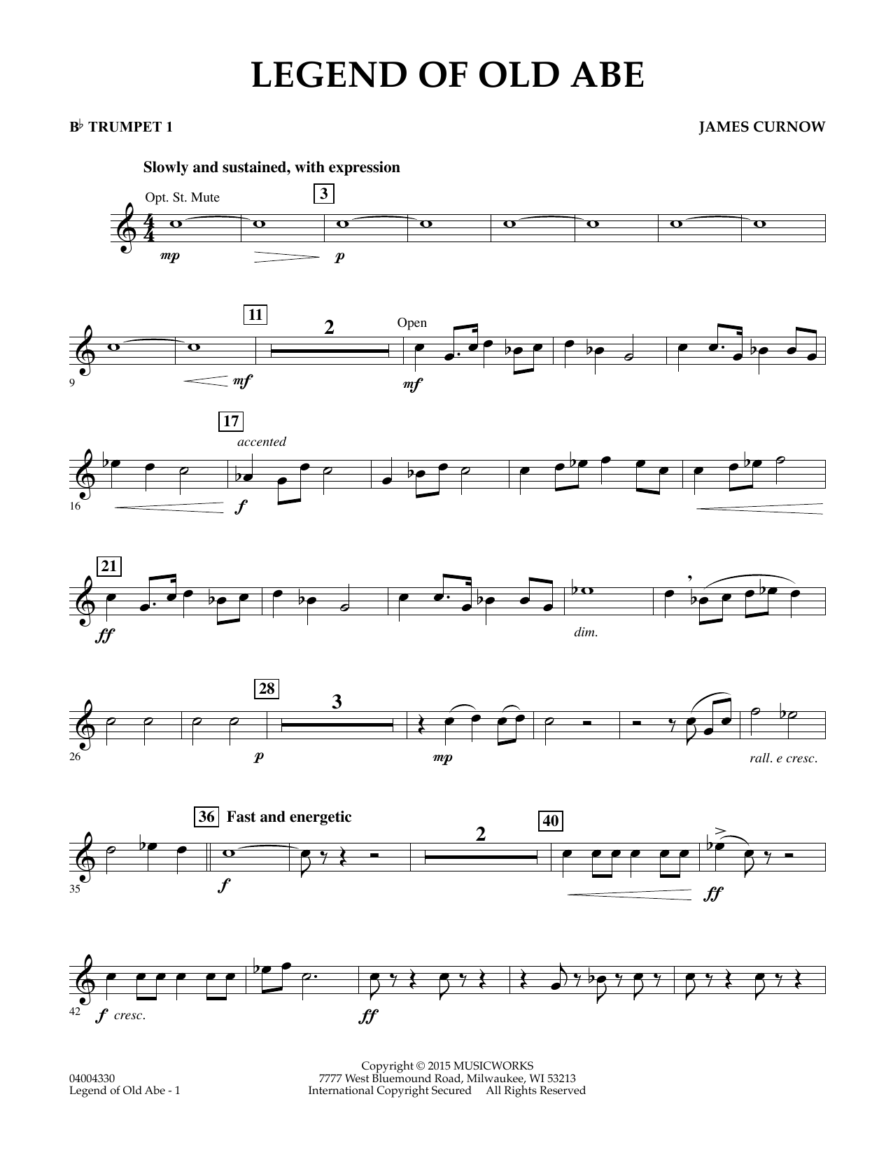 Named after President Lincoln, Old Abe was a famous bald eagle who served as mascot for the 8th Wisconsin Volunteer Infantry Regiment during the Civil War. Legend of Old Abe is a marvelously descriptive work for young bands that takes the listener on a journey of Old Abe's exploits. From a peaceful and serene opening the work progresses through the sounds of conflict and battle. The mood turns reflective and then triumphant as the music celebrates this amazing true story. Combine cross curricular teaching in your bandroom as you bring history to life through music. Dur: 3:50