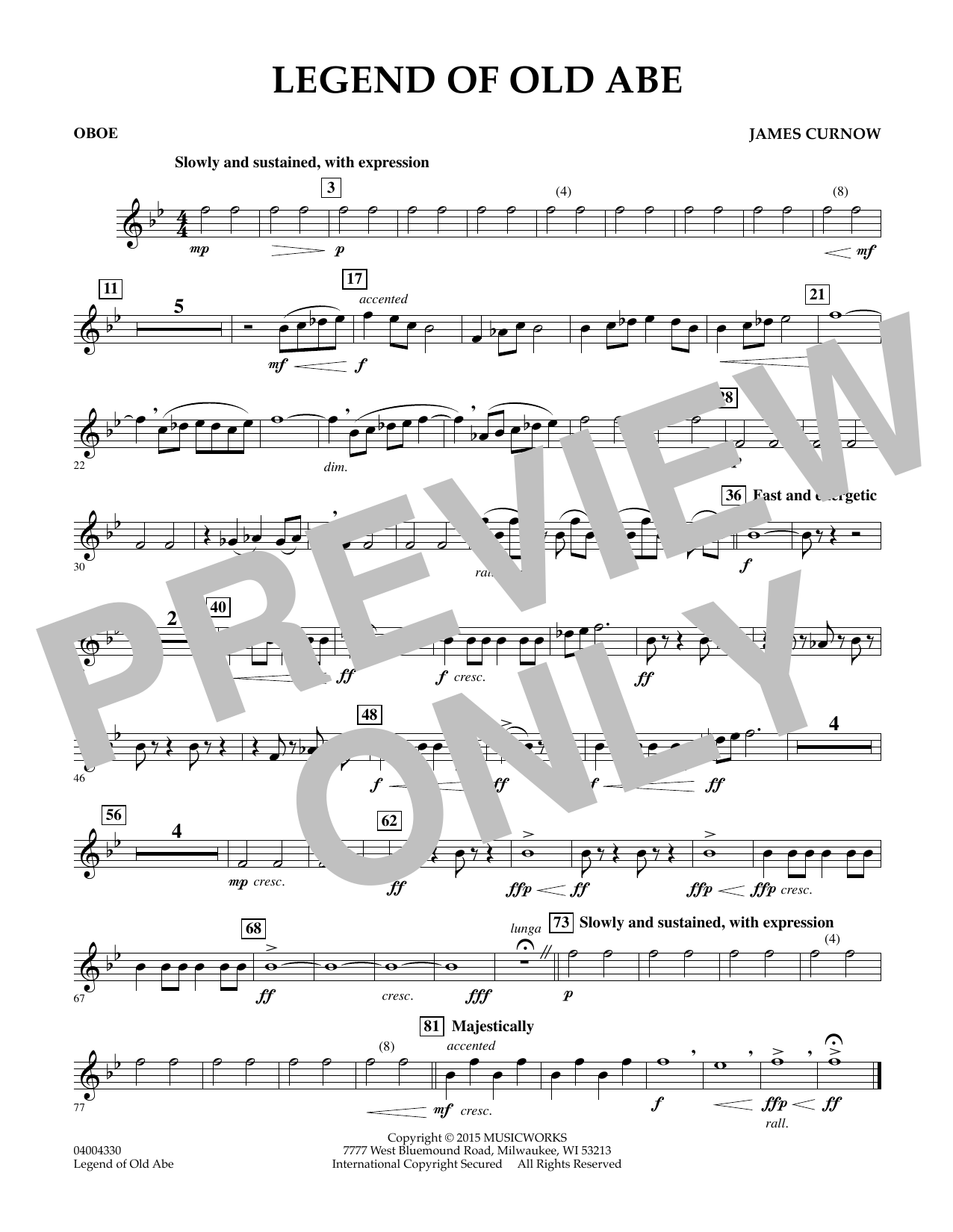 Named after President Lincoln, Old Abe was a famous bald eagle who served as mascot for the 8th Wisconsin Volunteer Infantry Regiment during the Civil War. Legend of Old Abe is a marvelously descriptive work for young bands that takes the listener on a journey of Old Abe's exploits. From a peaceful and serene opening the work progresses through the sounds of conflict and battle. The mood turns reflective and then triumphant as the music celebrates this amazing true story. Combine cross curricular teaching in your bandroom as you bring history to life through music. Dur: 3:50