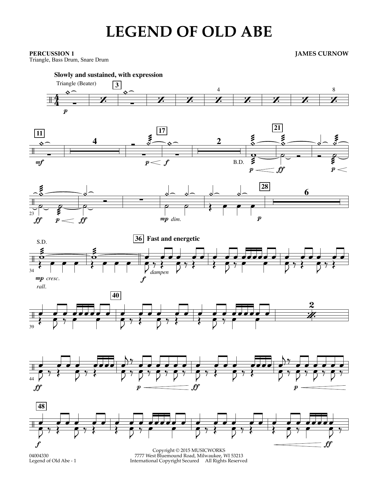 Named after President Lincoln, Old Abe was a famous bald eagle who served as mascot for the 8th Wisconsin Volunteer Infantry Regiment during the Civil War. Legend of Old Abe is a marvelously descriptive work for young bands that takes the listener on a journey of Old Abe's exploits. From a peaceful and serene opening the work progresses through the sounds of conflict and battle. The mood turns reflective and then triumphant as the music celebrates this amazing true story. Combine cross curricular teaching in your bandroom as you bring history to life through music. Dur: 3:50