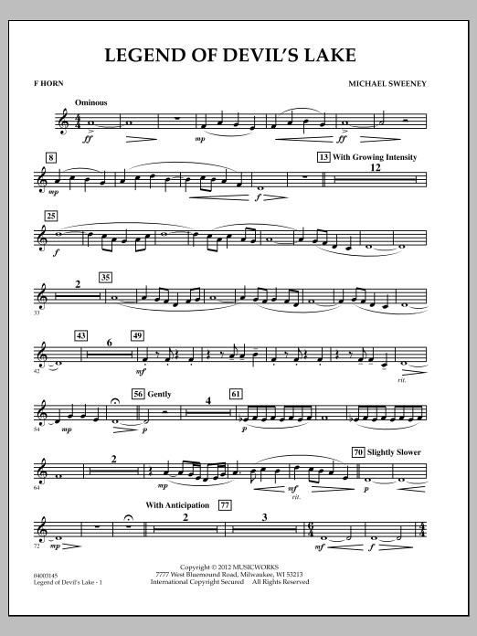 Michaels dramatisches Werk für junge Spieler stellt eine uralte Geschichte über den Kampf zwischen Wasserschlangen und riesigen Donnervögeln dar und bietet eine Fülle von Bildern inmitten dunkler Klänge und treibender Perkussion, die mit zarten Melodien und reichen harmonischen Strukturen kontrastiert werden. Diese stilübergreifende Komposition ist ein fesselndes und lohnendes Werk für ein Konzert oder ein Festival. (Grad 2,5).