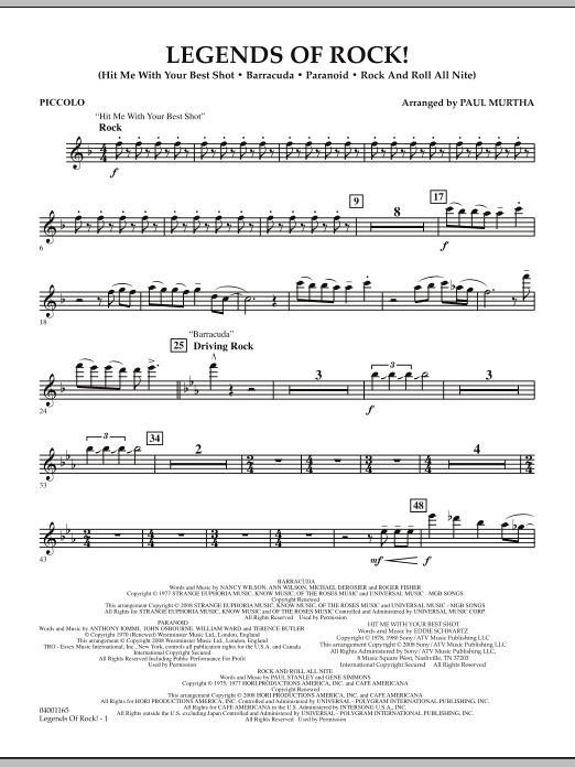 From the video game screen to your concert stage, here's a blockbuster medley for band that features sturdy rock classics from the '70s. Includes: Hit Me with Your Best Shot (Pat Benatar), Barracuda (Heart), Paranoid (Black Sabbath), Rock and Roll All Nite (Kiss).