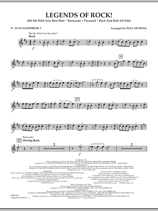 From the video game screen to your concert stage, here's a blockbuster medley for band that features sturdy rock classics from the '70s. Includes: Hit Me with Your Best Shot (Pat Benatar), Barracuda (Heart), Paranoid (Black Sabbath), Rock and Roll All Nite (Kiss).