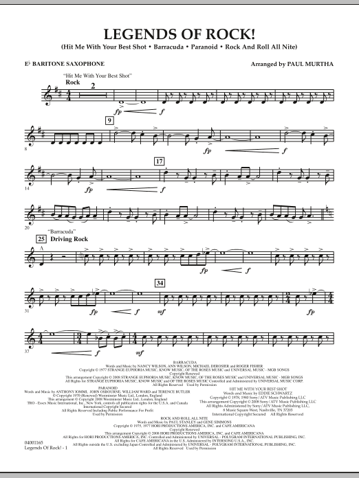 From the video game screen to your concert stage, here's a blockbuster medley for band that features sturdy rock classics from the '70s. Includes: Hit Me with Your Best Shot (Pat Benatar), Barracuda (Heart), Paranoid (Black Sabbath), Rock and Roll All Nite (Kiss).
