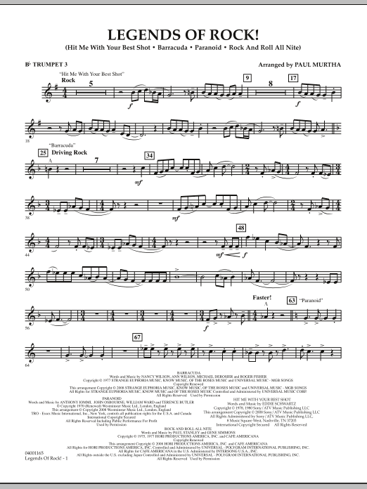 From the video game screen to your concert stage, here's a blockbuster medley for band that features sturdy rock classics from the '70s. Includes: Hit Me with Your Best Shot (Pat Benatar), Barracuda (Heart), Paranoid (Black Sabbath), Rock and Roll All Nite (Kiss).