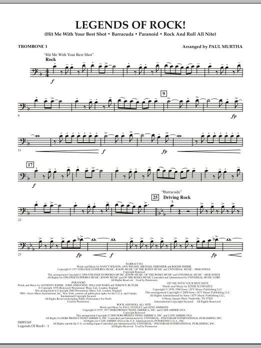 From the video game screen to your concert stage, here's a blockbuster medley for band that features sturdy rock classics from the '70s. Includes: Hit Me with Your Best Shot (Pat Benatar), Barracuda (Heart), Paranoid (Black Sabbath), Rock and Roll All Nite (Kiss).