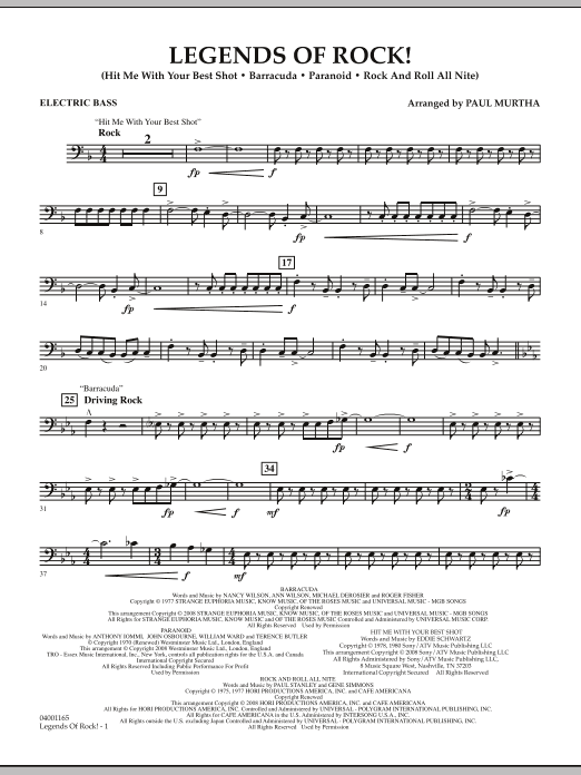 From the video game screen to your concert stage, here's a blockbuster medley for band that features sturdy rock classics from the '70s. Includes: Hit Me with Your Best Shot (Pat Benatar), Barracuda (Heart), Paranoid (Black Sabbath), Rock and Roll All Nite (Kiss).