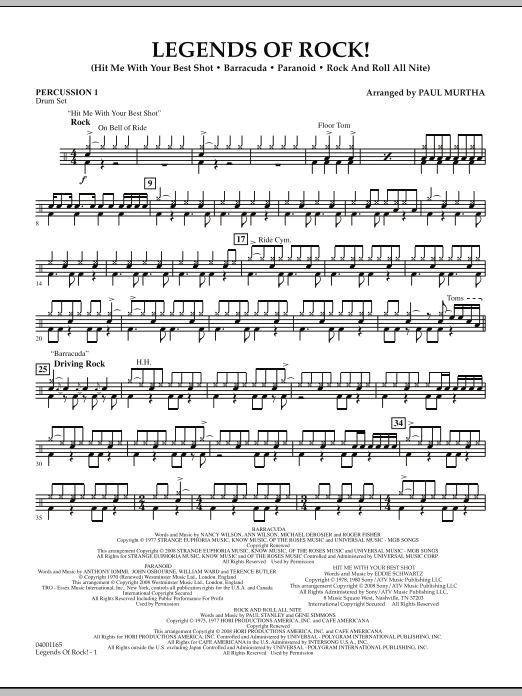 From the video game screen to your concert stage, here's a blockbuster medley for band that features sturdy rock classics from the '70s. Includes: Hit Me with Your Best Shot (Pat Benatar), Barracuda (Heart), Paranoid (Black Sabbath), Rock and Roll All Nite (Kiss).