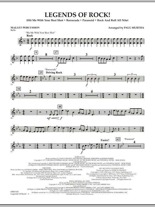 From the video game screen to your concert stage, here's a blockbuster medley for band that features sturdy rock classics from the '70s. Includes: Hit Me with Your Best Shot (Pat Benatar), Barracuda (Heart), Paranoid (Black Sabbath), Rock and Roll All Nite (Kiss).