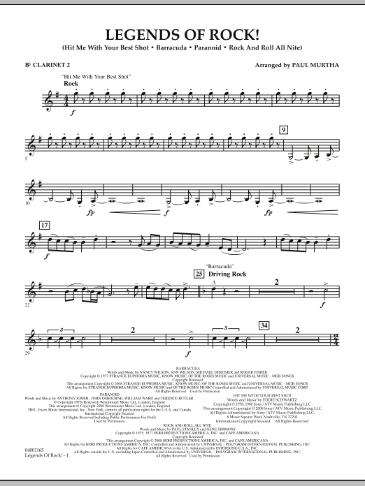 From the video game screen to your concert stage, here's a blockbuster medley for band that features sturdy rock classics from the '70s. Includes: Hit Me with Your Best Shot (Pat Benatar), Barracuda (Heart), Paranoid (Black Sabbath), Rock and Roll All Nite (Kiss).