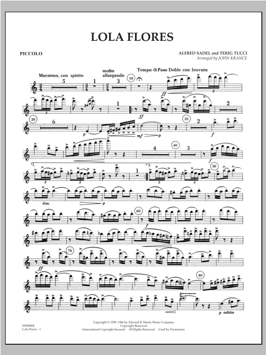 The lively dance style of the Paso Doble (double-step) is inherent in Spanish culture and claims its roots from the excitement and drama of the bullfight arena. Here in one of the most famous Paso Dobles can be heard the anticipation and pageantry as the matadors majestically enter the ring. John Krance's classic 1966 setting is a distinctive and important work for band. (Grade 4) Dur: 4:00 Recorded by the Texas A&M University Wind Symphony - Timothy Rhea, conductor From Mark Records Wind Band Masterworks Volume V 8515-MCD - Used with permission.